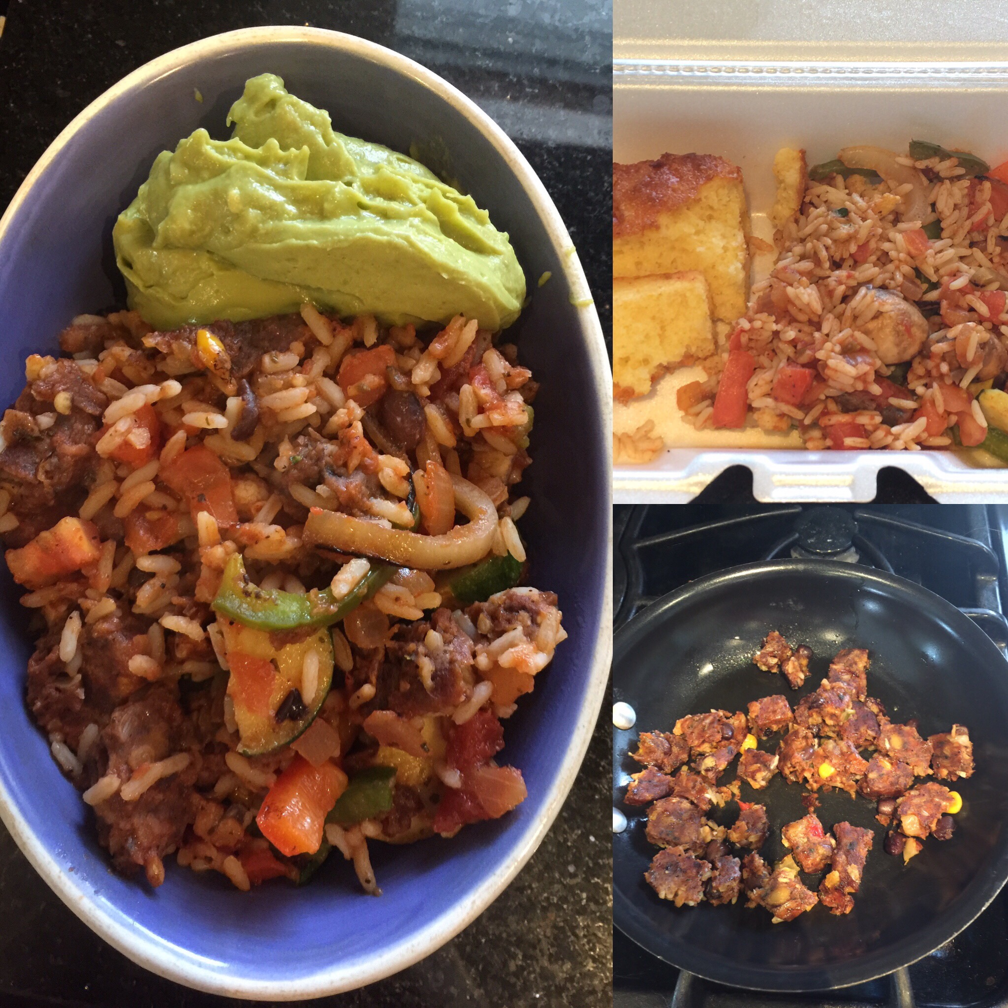 Last night we headed out to dinner at #JoseTejas in Fairfield, NJ for dinner after enjoying an open house event at #NewYorkRedBullsArena (however like so many NY teams, the stadium is in Jersey). The best part of eating out, for me at least, is reinventing my leftovers. I had the vegetable jambalaya, which surprisingly did not have beans. I added a #Gardein Chipotle Black Bean burger and a few tablespoons of salsa. Once plated, I added a 100 calorie pack of guacamole, fine, 2 of them. Oh, and I am one of those unique folks that dislikes plain cornbread and as much as I typically avoid wasting food, it was tossed. Totally better the second time around.